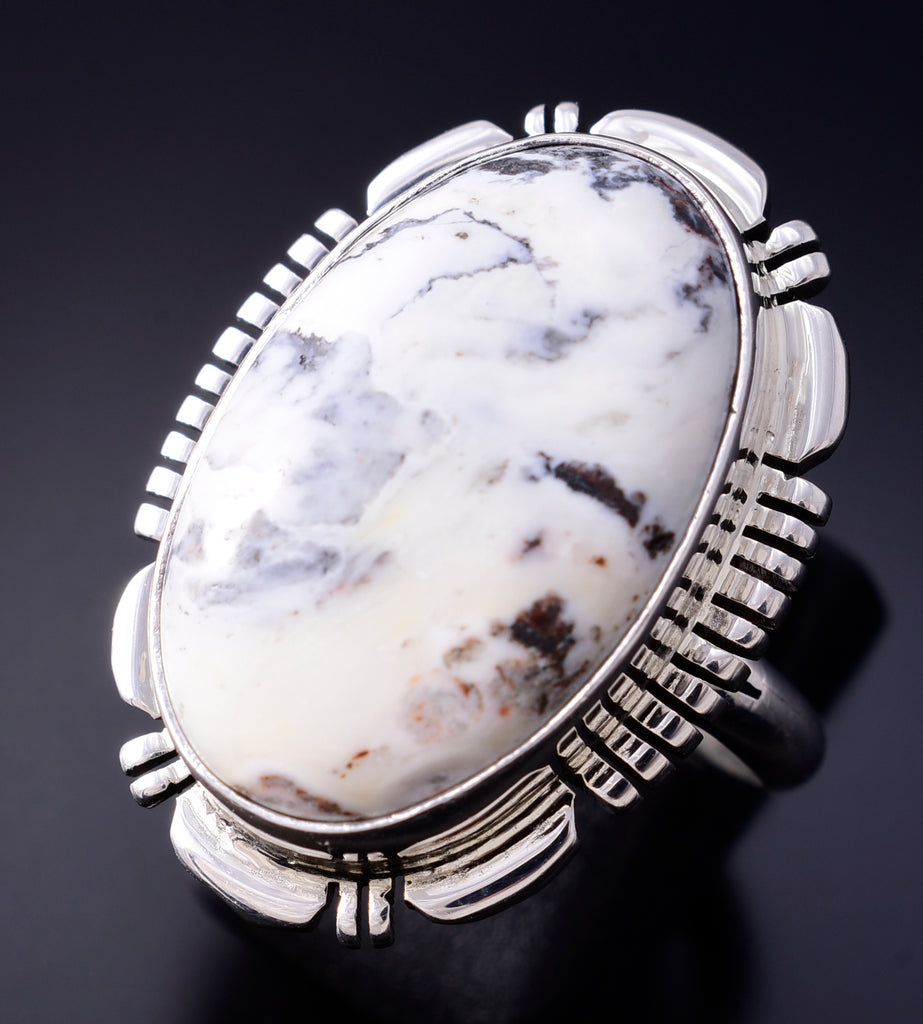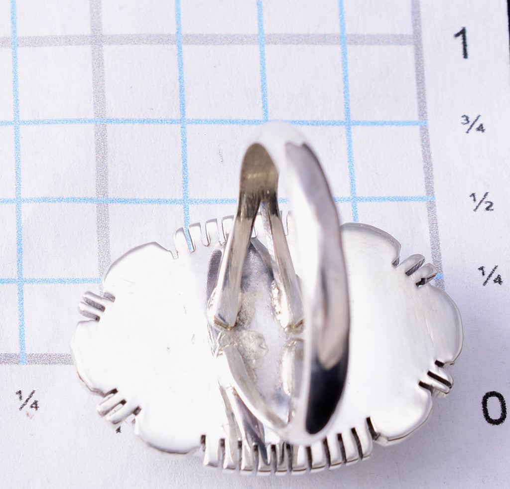 Size 9 Silver & White Buffalo Turquoise Navajo Round Ring - Norvin Johnson 5L07T