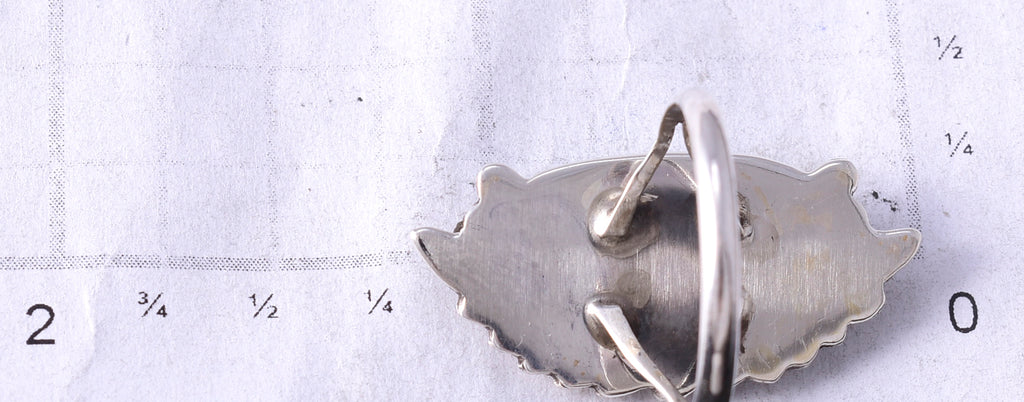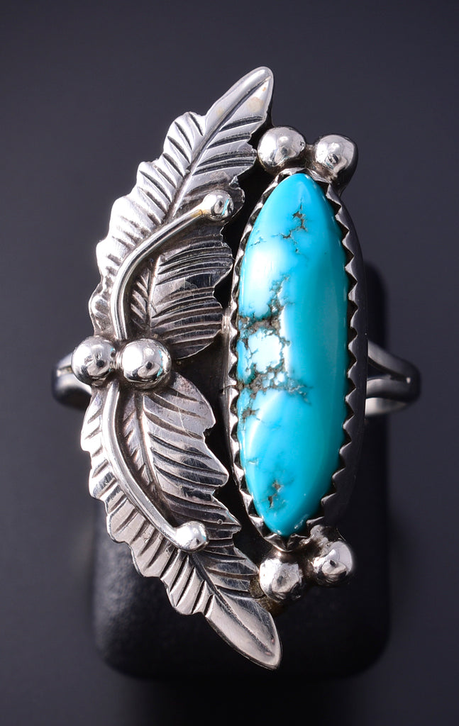 Material: Sterling Silver, Turquoise Dimensions: Size 7. Ring's face is 1-1/8" long. Weight (in grams): 4.5 Hallmark/Signature: N/A This piece is a stunning example of classic Navajo jewelry. This piece is handmade out of sterling silver and genuine stones.