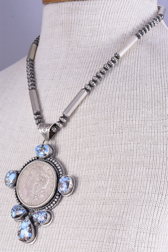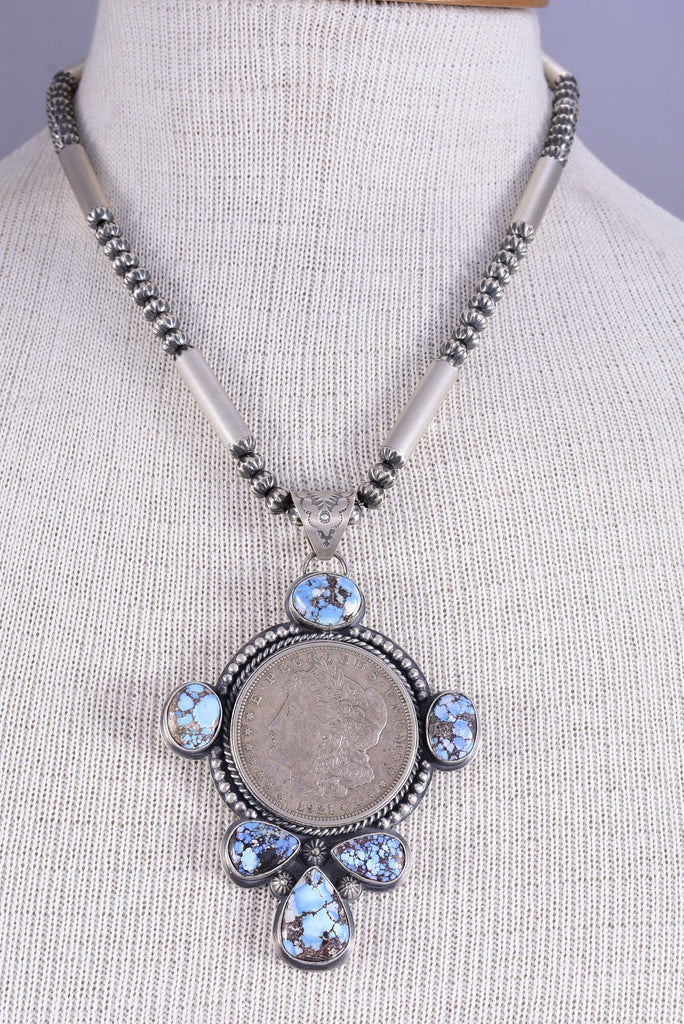 This piece is a stunning example of classic Navajo jewelry. This piece is handmade out of sterling silver and genuine stones.